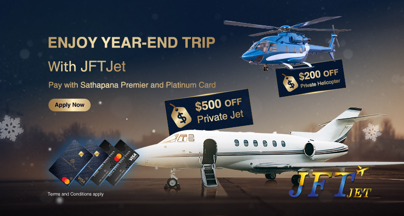 Enjoy USD 500 off on private jet services for your holiday, healthcare, or business trips to any destination worldwide, and USD 200 off on private helicopter services to your favorite destinations in Cambodia. Simply pay or present your Sathapana Premier and Platinum card at JFT Jet to receive these exclusive offers.