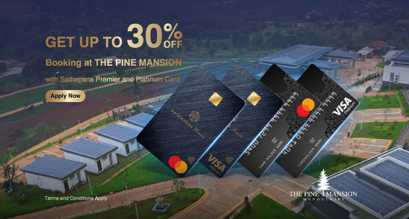 Explore Mondulkiri and immerse yourself in its stunning natural beauty and cool weather with a special offer! Enjoy up to 30% off your stay at The Pine Mansion Resort when you book with your family and loved ones and pay with your Sathapana Premier or Platinum Card.